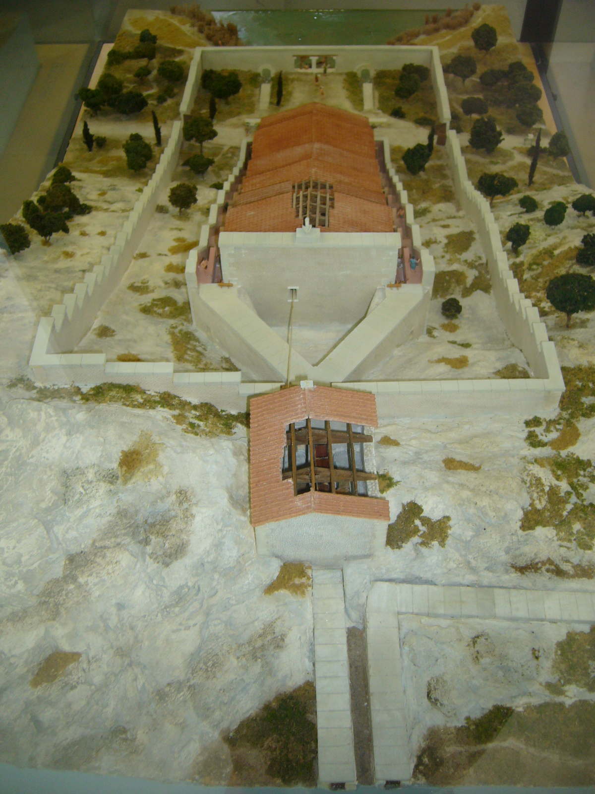 A Barbegal, la falaise qui penche à 30° vers les marais des Baux avec un dénivelé d'exactement 18,6 m fait réfléchir les ingénieurs de l’époque : en haut ils disposent d’eau courante. En bas les marais qui n’avaient pas encore été asséchés permettent la navigation et le transport vers Arles. Merveilleux. Ils ont une idée : doubler le canal d’amenée d’eau potable par un canal industriel, qui fera tourner des roues de moulins. Mais pas une roue : des roues, 8 d’un côté, et 8 en parallèle ! Deux mètres dix de diamètre. Jean-Claude Golvin a reconstitué dans une aquarelle magistrale la construction décrite par Fernand Benoit, et vous découvrez 16 moulins à aubes en cascade.