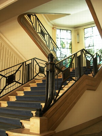 Nous sommes 91, avenue de la Libération , et je rage de ne pouvoir prendre de suite la voiture pour m’y rendre, mais sans doute est-ce privé, interdit d’entrer, interdit de photographier ? (je pense à la fable de la Fontaine le renard et les raisins). La mention des Monuments historiques porte les précisions suivantes : sont classés : Le hall de l'entrée d'honneur en totalité, ainsi que l'escalier qui le prolonge, avec sa cage et ses verrières de Jacques Gruber , l'escalier sur plan triangulaire avec sa rampe de Jean Prouvé (cad. CK 424) : inscription par arrêté du 22 août 2003. Bourgon Jean (architecte) , Subes Raymond (ferronnier) , Prouvé Jean (ferronnier), Gentil et Bourdet (mosaïste) , Gruber Jacques (maître verrier) , Lemoine (maître verrier). Que des noms illustres, il ne me manquait plus que Jean Prouvé. Et je découvre le verrier Lemoine !