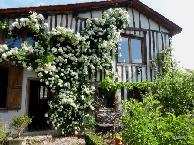 Puis dans des parcours de rocaille ; les rosiers fleurissent partout. Un jardin fini est un très bel espace, magnifique pour observer les papillons en effet. Il parait qu’en bas, sur les prunelliers, sévissaient d’ immenses populations de chenilles de petit paon de nuit ! C’était avant, on dirait qu’elles ont disparu, il va falloir expertiser pourquoi ce Paradis basculerait vers le néant ? Il faut dire qu’ici on est membre de Noé Conservation, et que Elizabeth compte tous les jours les papillons qu’elle observe dans son jardin.