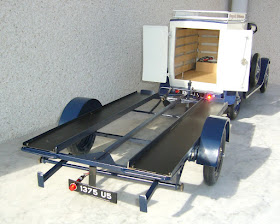 J'avais conçu un trailer destiné à la transporter, tractée par différents véhicules dont ma limousine bleue B14 :