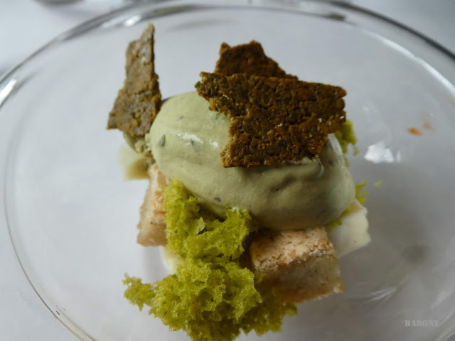 cerdo confitada, esturión ahumado, praliné salado de avellanas y crujiente de