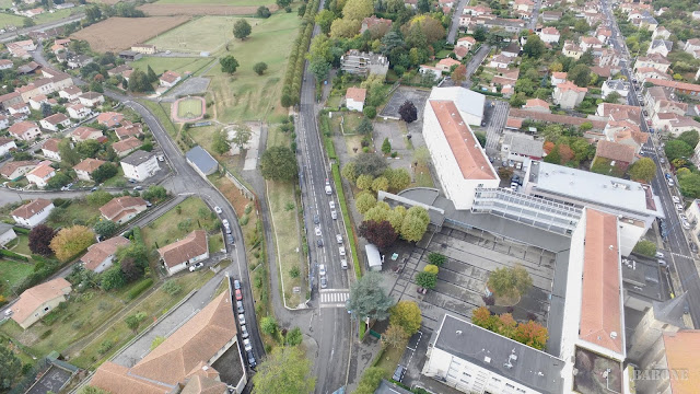 Nous sommes désormais mi-octobre, temps orageux, le soleil manque au rendez-vous, il faut bien faire sans. Les VRD (les voies et réseaux divers) de la place de la Laïcité -la bien-nommée- prennent forme, et vu depuis le ciel des hirondelles, on commence à deviner l'effet prochain une fois le gazon poussé.