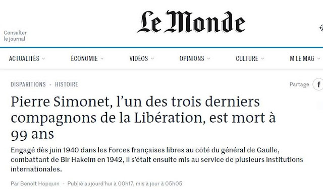 Son décès fait suite à celui d’un autre compagnon, d’Edgard Tupët-Thomet, décédé le 9 septembre à l’âge de 100 ans.