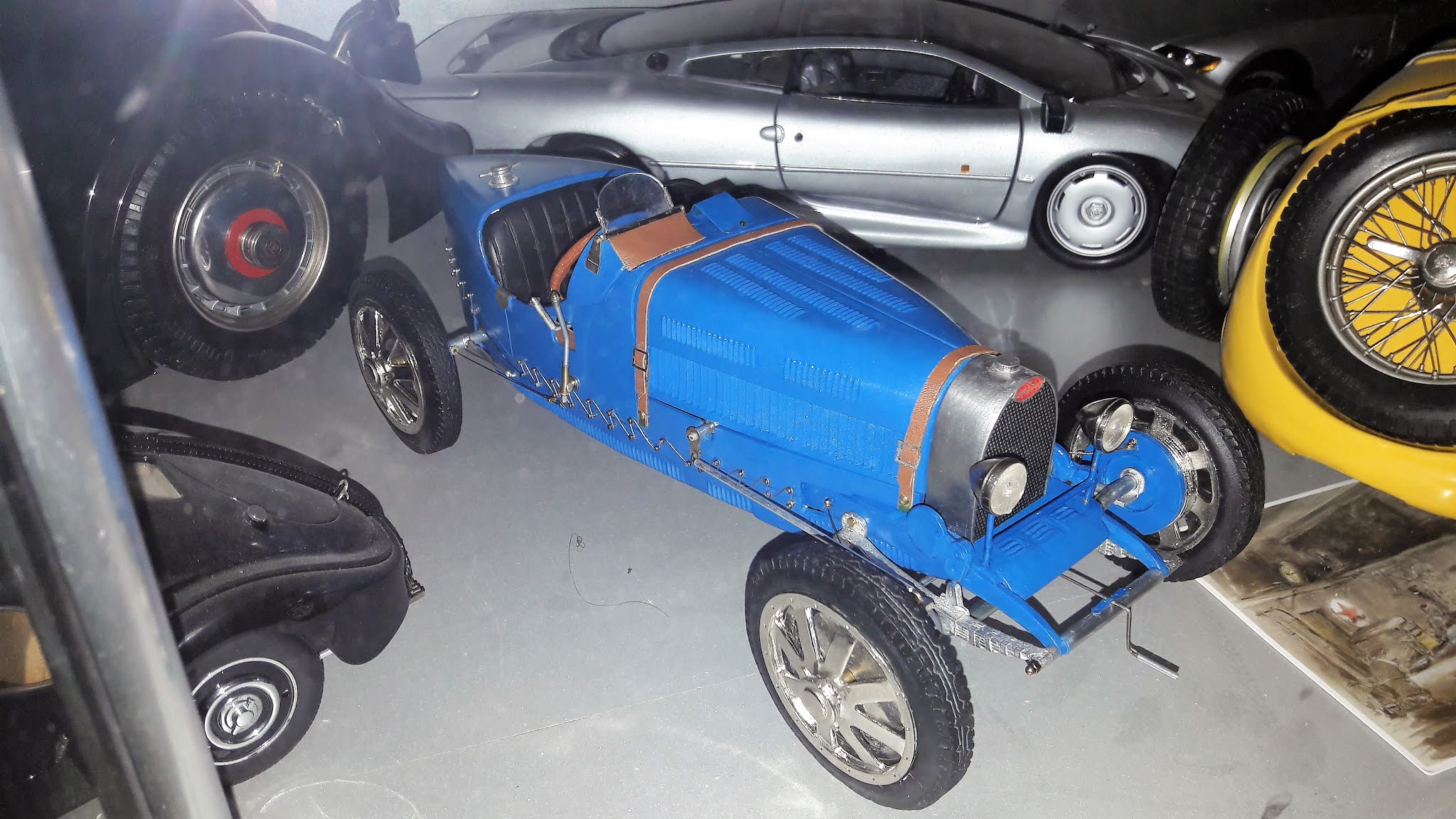 Le temps passe, et des morceaux d'histoires interrompues (du moins le croyais-je) se renouent : voilà qu'Ariane avec son fil me fait un tour de sa façon : comme Catherine Deneuve qui cherche des poules (et les trouve ; humour) sur "le BONCOIN", je cherche toujours des maquettes de Bugatti... et j'en trouve ! Une annonce provenant de Molsheim, ville unique puisque c'était l'adresse des usines d'Ettore Bugatti, une annonce donc propose une calandre, de très belle facture. Le pseudo de l'annonceur commence par C et se termine par Bug, on devine un fan de Bugatti, et après s'être échangé des messages, il me téléphone. On parle Bugatti, cela dure au moins une heure, et en lui montrant mes photos, qui figurent à la fin de ce billet rédigé le 12 août 2016, cela va faire cinq années, il précise :