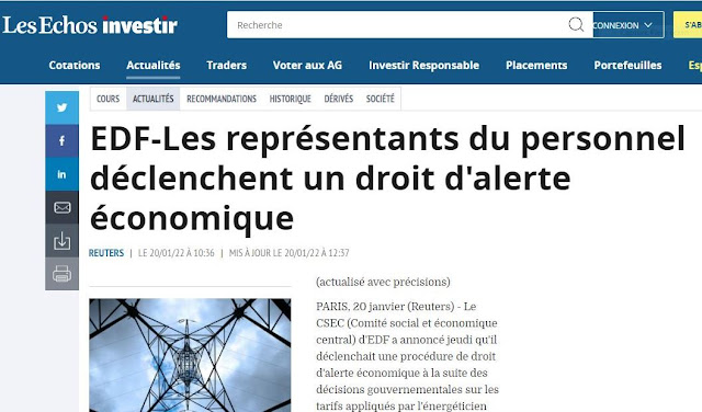 Comme tout le monde, je reçois ma facture de chauffage au gaz. La facturation est incompréhensible, entre l'abonnement fixe ; les consommations variables par périodes ; et les taxes ! Je m'en tire de la manière suivante : je relève les mètres cubes au compteur, peu importe la transformation en KwH, et en face, forfait ou pas, j'ai le prix TTC total. La division me donne le prix par m3. Il y a un an mi-janvier 2021 = 0,6099 Euros/m3. Un an après, le prix est devenu 1,045, 70% d'augmentation ! ! Nous savons qu'il en est de même pour notre électricité nucléaire, mais dont (difficile à suivre) le prix est artificiellement relevé au prix équivalent du gaz européen, annulant le bas prix de revient de l'électricité nucléaire française. A tel point que tous les jours on nous rabâche que l'Etat bloque la hausse à 4%, obligeant EdF quasi nationalisé à brader ses prix à ses concurrents, (concurrents artificiels puisqu'ils ne produisent rien), en rajoutant en tout 8 milliards au pot pour compenser la hausse ! Enfin, et c'est le bouquet, EdF ne produit pas assez puisque 10 centrales sont à l'arrêt sur 56, nous obligeant à importer du courant produit par des centrales ... à charbon !