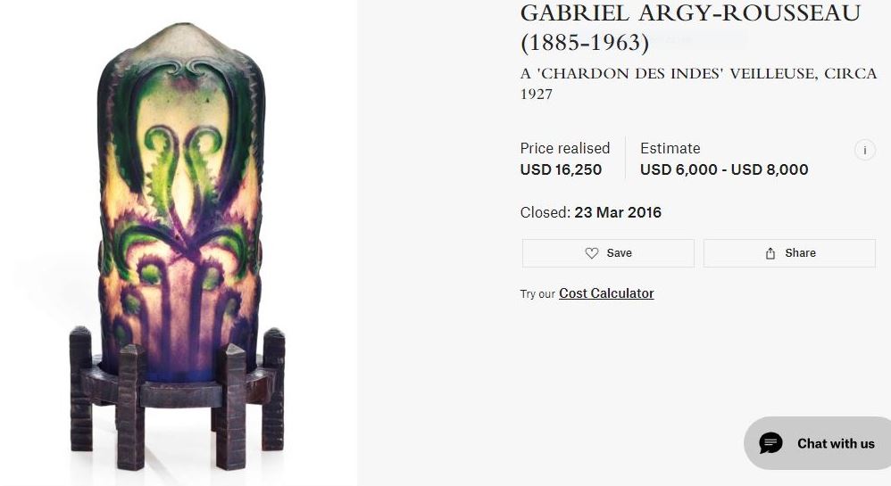 Une fois encore, je suis sauvé par la maison de vente aux enchères Christies. Un collectionneur fou de pâtes de verre en a acheté toute sa vie. J'imagine qu'il est mort, et sa collection est vendue entière, pleine de pièces magnifiques, cela se passait à New York le 23 mars 2016