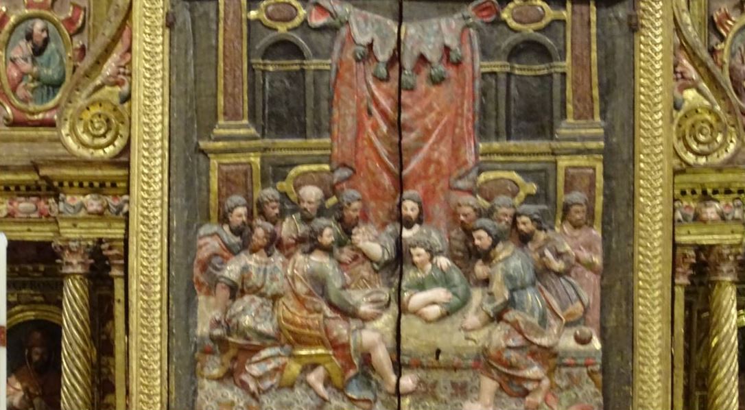 Du coup je laisse passer des pans entiers d’images, c’est peut-être une Cène qui orne le tabernacle ? Qui sont ces autres figures de moines priant ? Quel est ce tableau à l’entrée à gauche avec le Mont des oliviers, encore la croix, encore un crâne, une femme est-ce Marie ? Un homme qui est-ce ? Un boulot à entreprendre serait d’écrire une notice de cet endroit privilégié, en l’écrivant après avoir retrouvé la Dame érudite de Lleida me permettrait de combler mes lacunes d’aujourd’hui !
