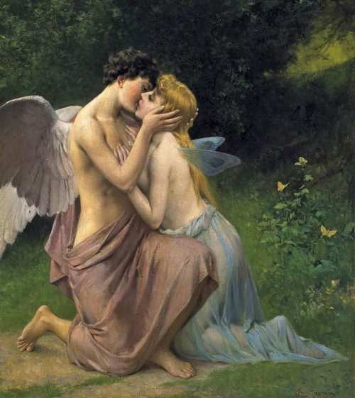 | une fois encore, Eros (ailes d'oiseau) embrasse Psyché (ailes de papillon) |