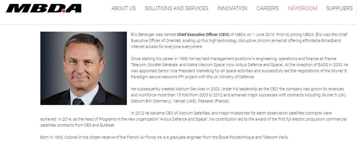 Je découvre un personnage français énigmatique, lui aussi cache mal un franc sourire, à vrai dire c’est une franche rigolade en direct devant Darius Rochebin : il s’appelle Eric Beranger, Polytechnicien, il est aussi pilote, comme Thomas, et passionné de sciences. Père de famille, ils ont deux enfants. Il se marre à nouveau quand Darius lui demande si 61 milliards c’est « gros » ? Paraphrasant notre Fabrice Lucchini national, il précise –« c’est é-nor-me » ! MBDA va sextupler sa production, et ce dès 2024. Pour le moment, en 2023, son chiffre d'affaires n'a été que de ...4,5 milliards (large sourire, "grave").