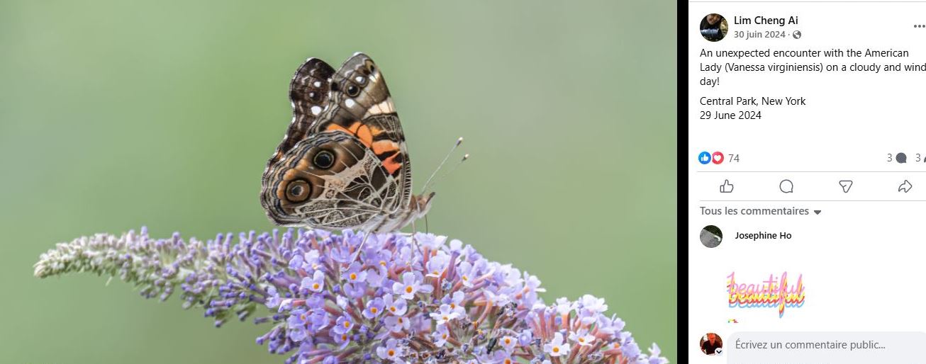 C'est l'inattendu sur facebook, ces messages qui m'arrivent du bout du monde, dans les détours de la Toile d'internet, avec les photos de Lim Cheg Ai. Il est "meilleur contributeur au groupe international : Butterflies around Word". Je dis IL jusqu'à ce que je tombe sur quelques photos du Personnage : il faut dire ELLE, elle aime les papillons, et appartient à l'un des nombreux groupes du monde photographiant et élevant les papillons de sa région. Espérons que grâce à elles et eux, ils sauveront la Beauté du Monde, quand les autocrates imposant leur vision de leurs Empires agrandis ne pensent qu'à le réduire en gravas ? Pour en faire quoi ? leur Pouvoir-éphémère sur Terre, sur mer et dans les airs ?