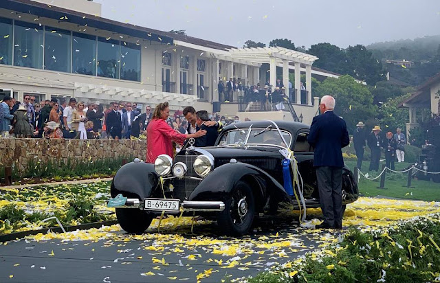 La tension a atteint son paroxysme lorsque le maître de cérémonie Derek Hill - fils du regretté Phil Hill, qui a tant fait pour faire de Pebble Beach un événement de classe mondiale - a ouvert l'enveloppe dorée contenant le verdict du jury. -"Et le gagnant du Concours d'élégance de Pebble Beach 2021 est : la Mercedes-Benz 540 K Autobahnkurier de 1938 d'Arturo et Deborah Keller !"